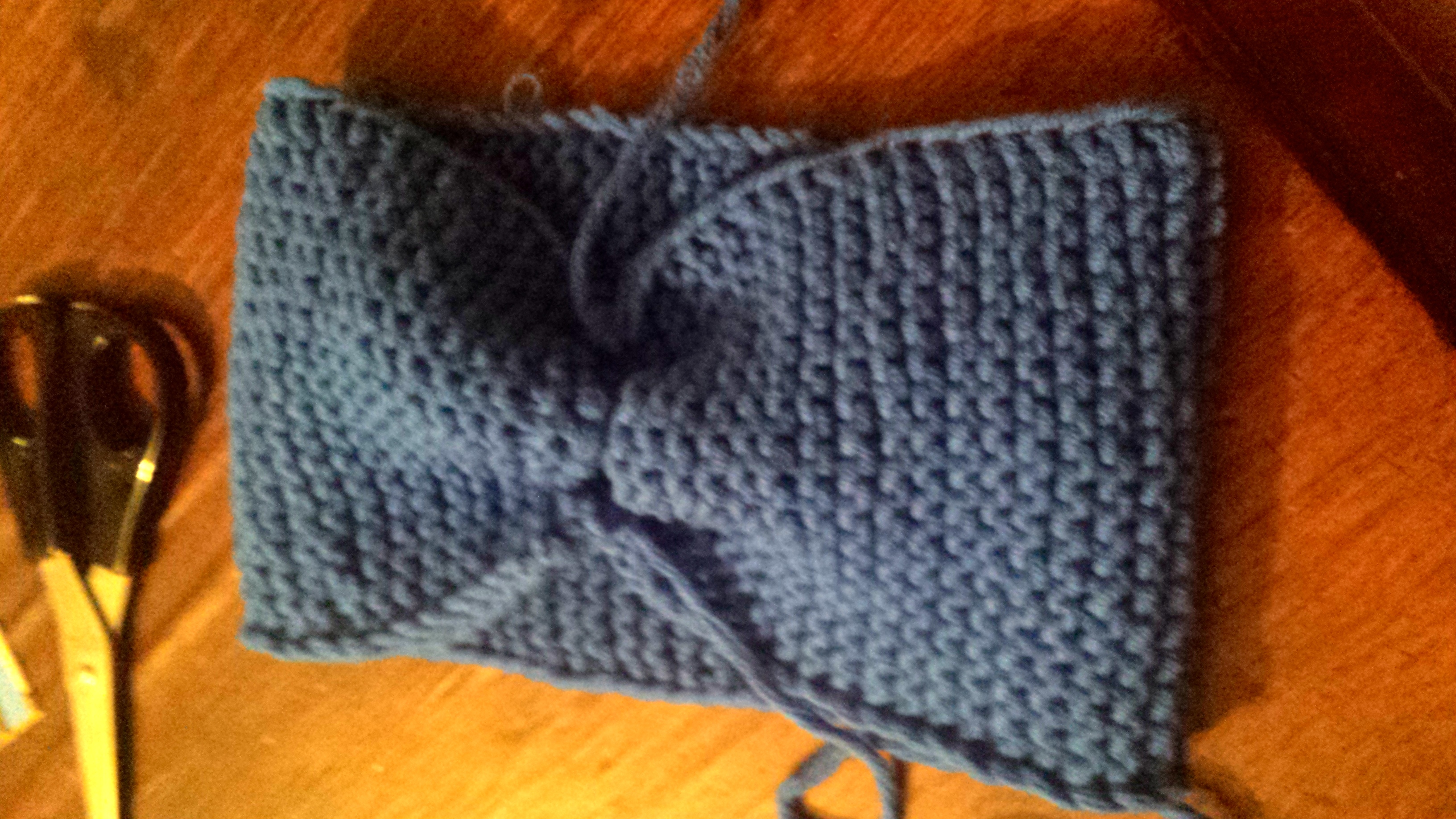 Nun werden die beiden Enden zusammengenäht. Auf den Fotos sieht das so aus: