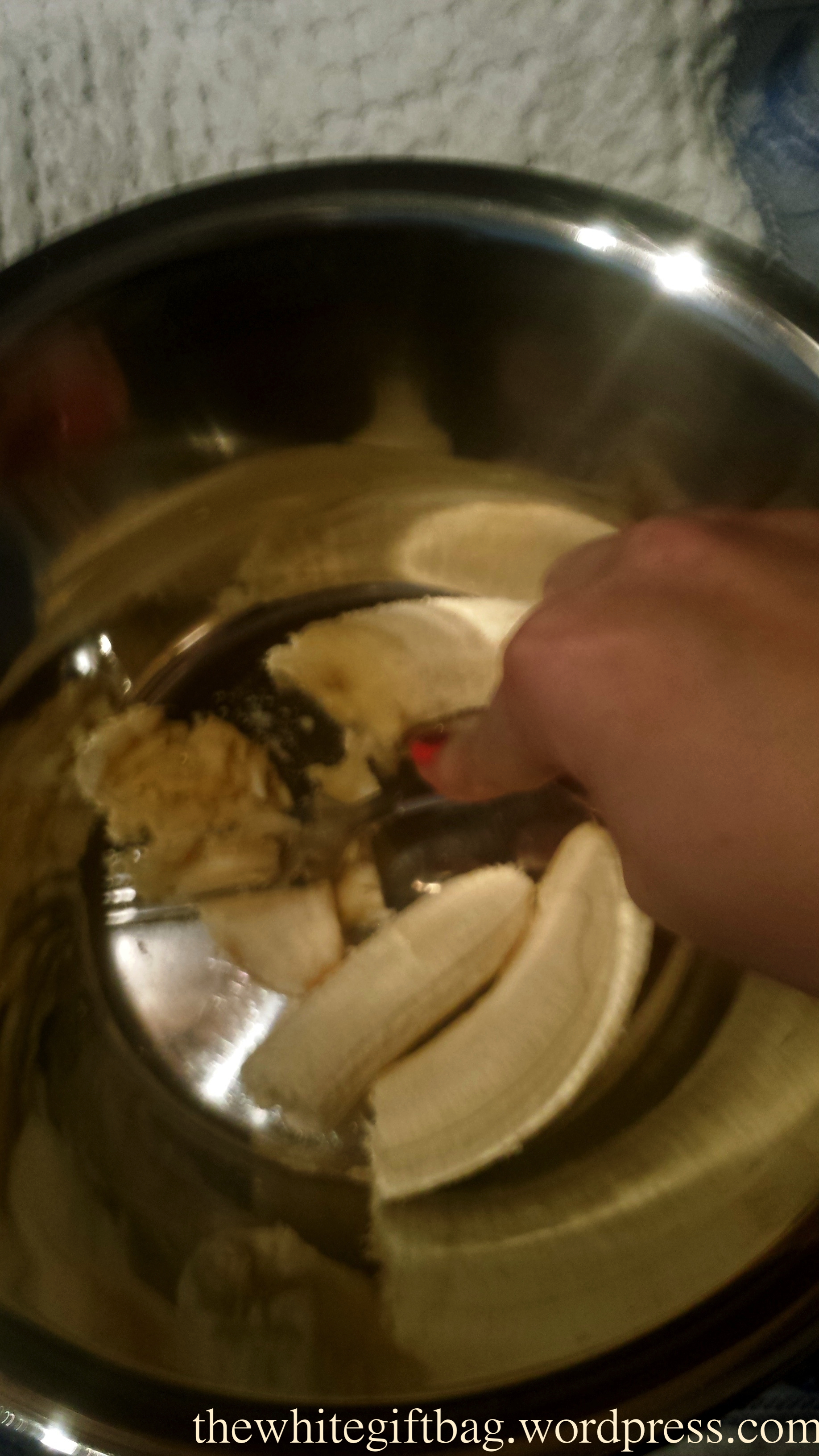 Schritt Eins: Bananen mit einer Gabel zerdrücken.
