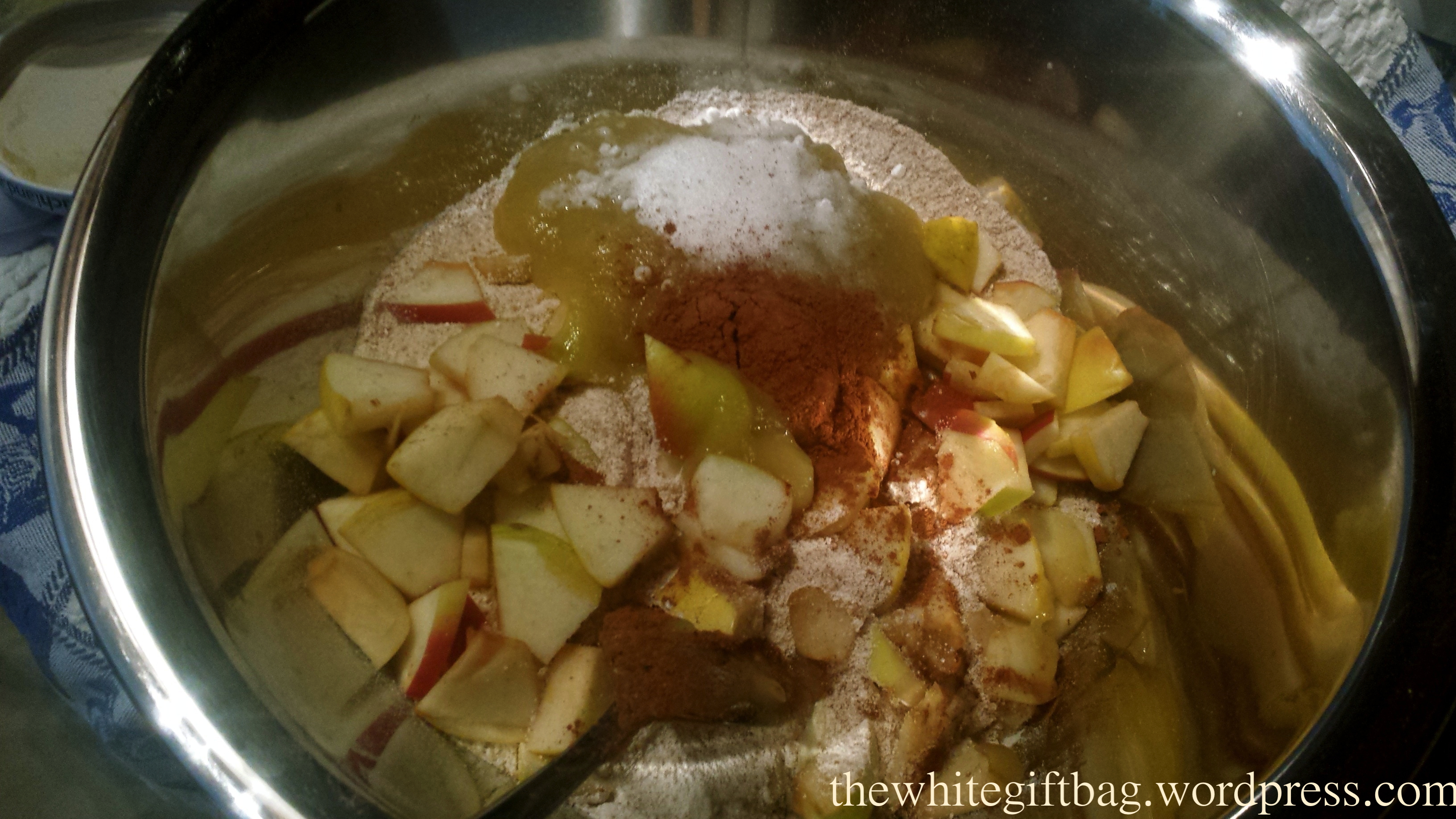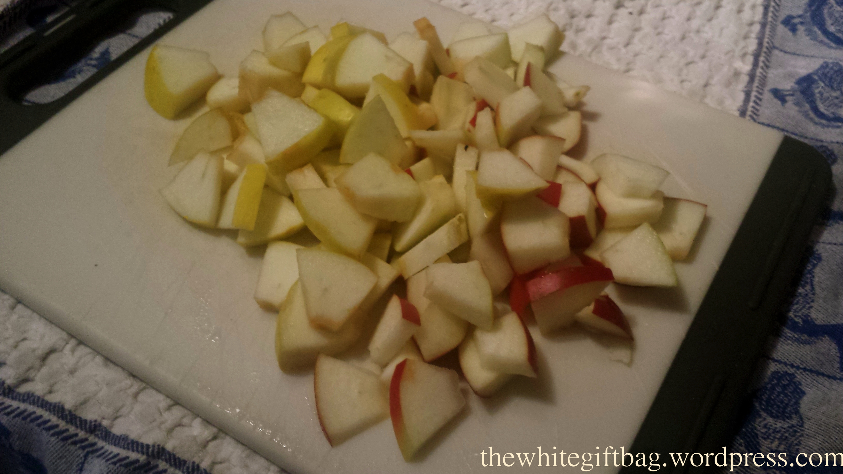 Schritt Zwei: Äpfel zerkleinern. Wer will, kann sie vorher auch schälen, finde ich aber nicht notwendig, wenn man sie gut abwäscht.