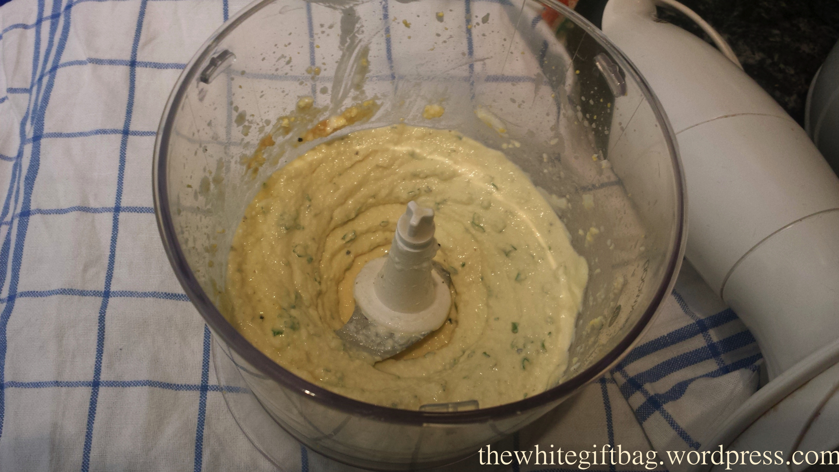 Gleich wie oben: Knoblauch pressen und alle Zutaten mit der Küchenmaschine für ein bis zwei Minuten zerkleinern.
