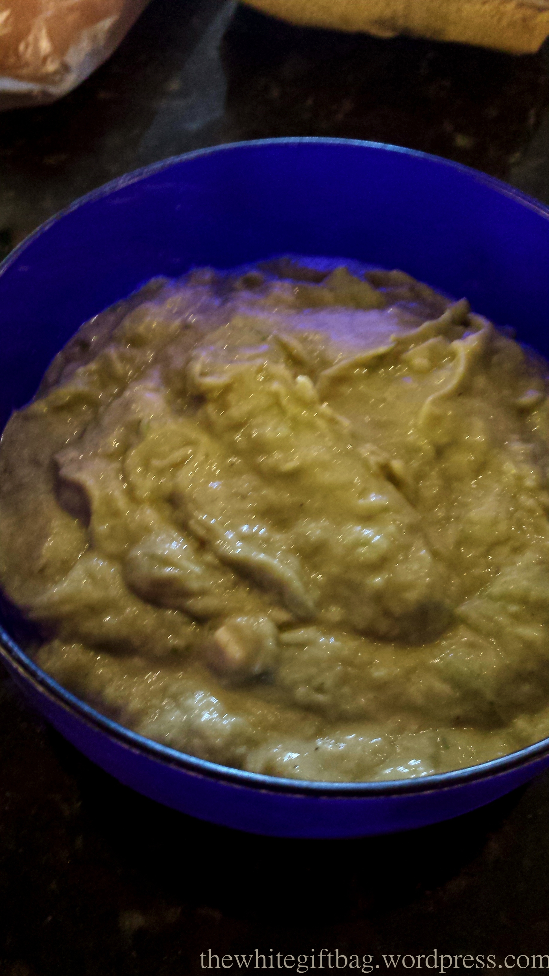 Wenn die Konsistenz zu fest ist, dann gibt man einfach ein bisschen Wasser dazu, immer esslöffelweise, bis man die gewünschte Beständigkeit erreicht ist.