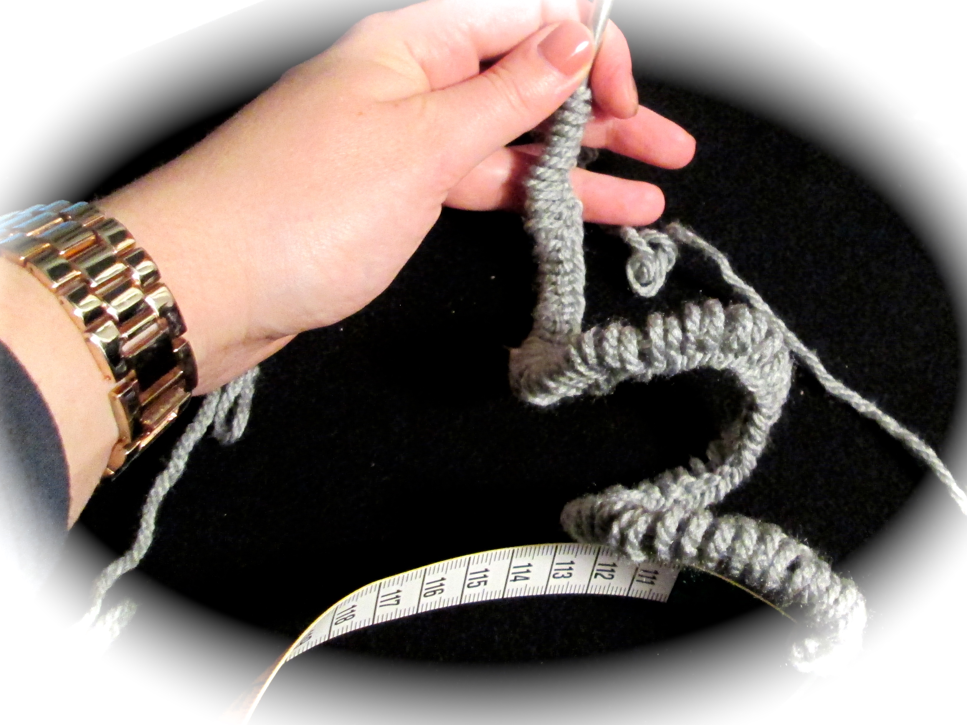 Schlagt so viele Maschen an, wie ihr vorher anhand der Maschenprobe errechnet habt, damit ihr einmal um euren Kopf kommt.